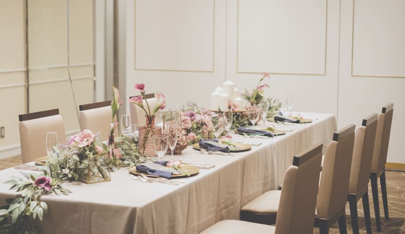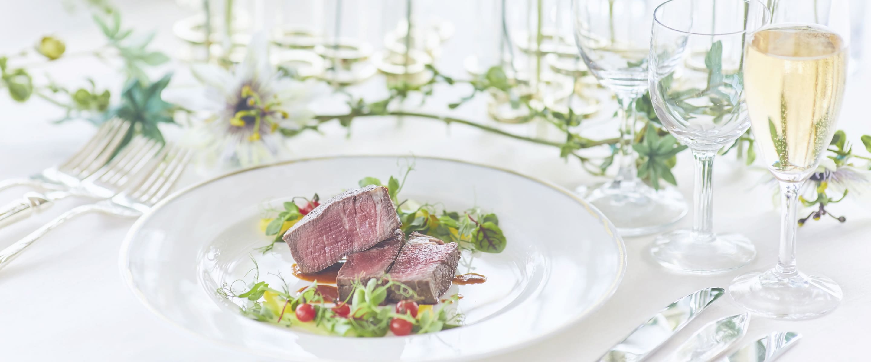 フランス料理、和洋折衷料理、中国料理と多彩なコースをご用意。お二人のおもてなしにぴったりのお料理をお選びください。