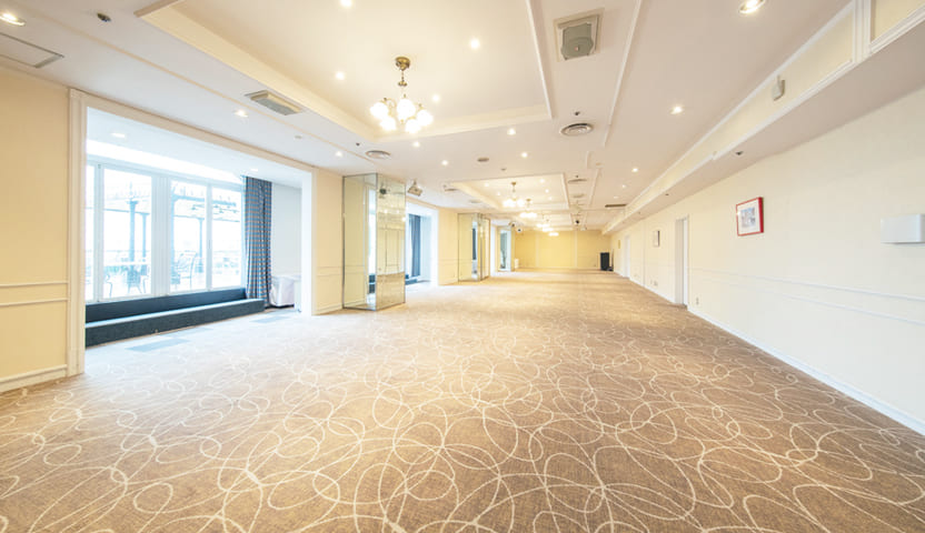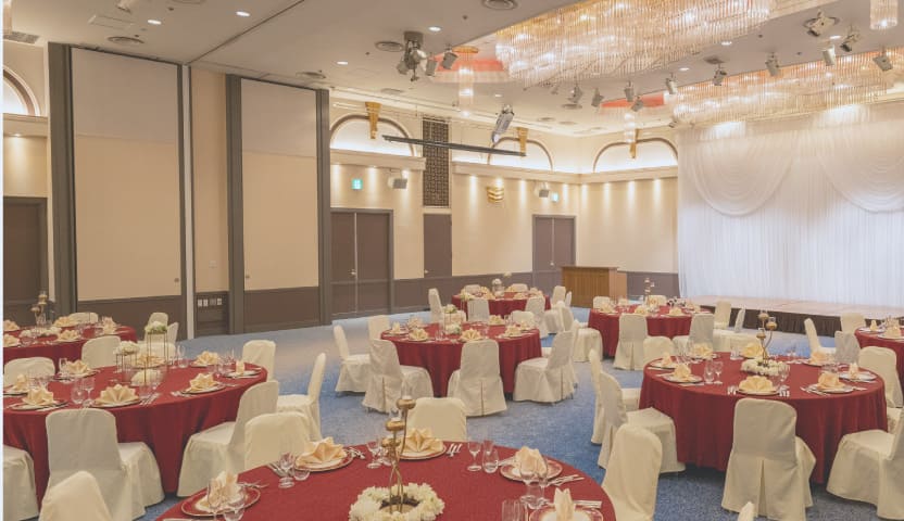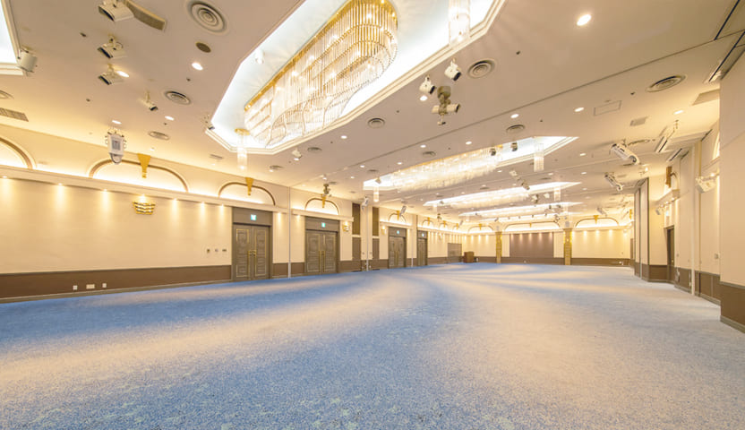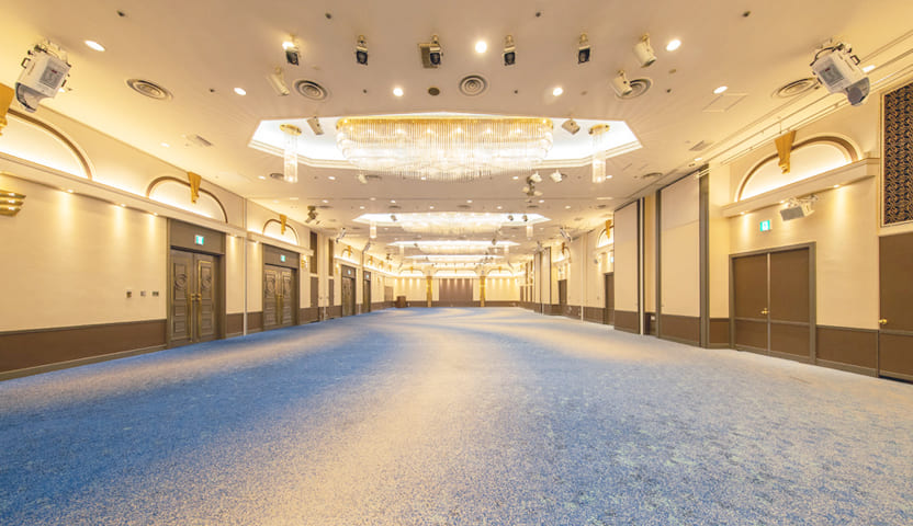 最大300名様の着席が可能な、正統派の披露宴会場「瑠璃の間」。